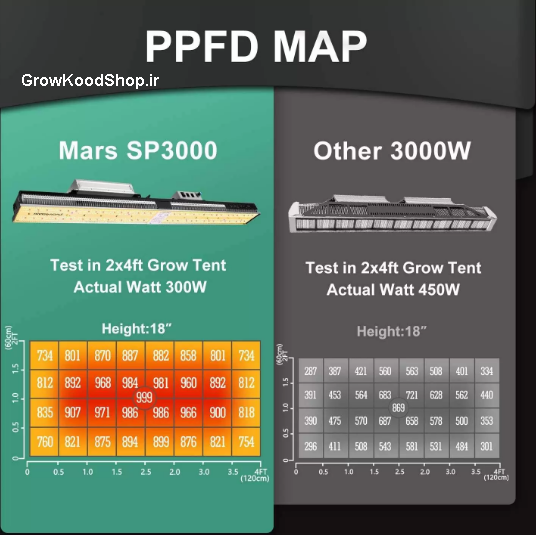 مقایسه نور پروژکتور Mars hydro sp3000 با پروژکتور های دیگر