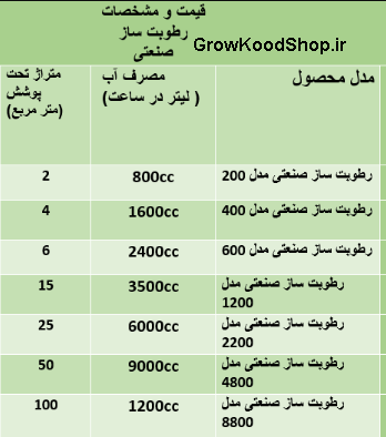 لیست مشخصات فنی رطوبت ساز گلخانه