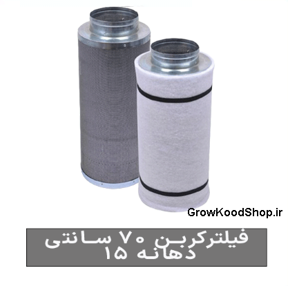 فیلتر کربن 70 سانتی (Carbon Filter) که به نام فیلتر کربن فعال هم می شناسند به همراه فن بین کانالی از تجهیزات بسیار مهم گلخانه ها، اتاق های رشد گیاه یا گروباکس ها و چادر رشد گیاه است که به دلیل استفاده شدن دانه های کرین فعال به این اسم معروف شده است. این دانه ها از جنس زغال نارگیل هستند که با عمل دمنده بین کانالی، هوا از داخل این فیلترها عبور کرده و با جذب سطحی یا Adsorption به آن می چسبد و هوا تصفیه می شود.
