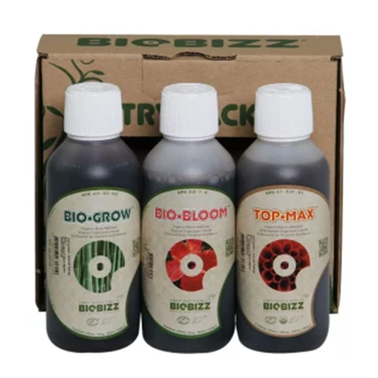 ترای پک 3 تایی بایوبیز (Indoor) 3 محصول ارگانیک و کاملا طبیعی را در اختیار شما قرار داده است. در این پک سه نوع کود مایع Bio Bloom، Bio Grow و Top Max قرار داده شده است. این پک 3 تایی را شرکت بایوبیز تولید می کند که یکی از معروف ترین کمپانی های دنیاست. آن دسته از کسانی که محیط کشت کوچکی در خانه یا فضای داخلی خود دارند، برای رشد کامل گیاه باید از کودهای قوی و حاوی مواد مغذی کامل استفاده کنند. هر یک از محصولات داخل پک 250 میلی لیتر است. در ادامه بیشتر با کود Biobizz Try Pack Indoor آشنا خواهید شد.